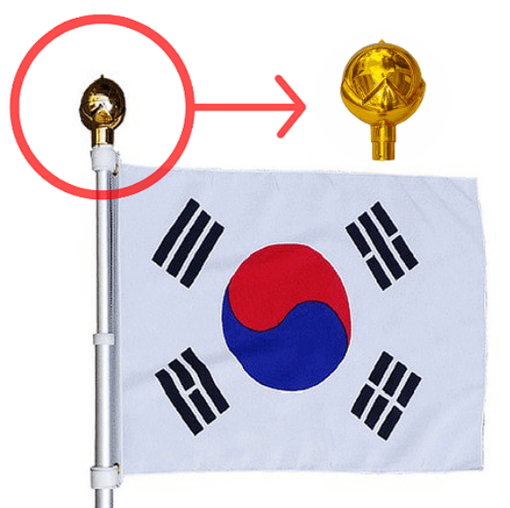 ✅ 깃발을 보호하는 의미 – 예로부터 깃발은 단순한 천이 아니라 정신과 상징을 담은 물건으로 여겨졌어요. 깃대 끝을 막아 깃발을 깨끗하게, 신성하게 지킨다는 의미가 있죠.